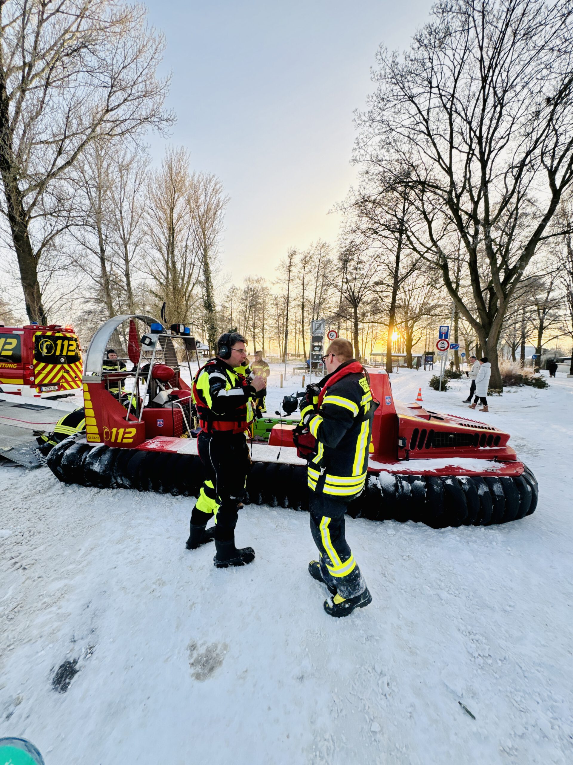 Am Nachmittag kam es zu einem weiteren Einsatz: Der Pressesprecher der Stadtfeuerwehr Wunstorf sowie der stellvertretende Ortsbrandmeister aus Steinhude befanden sich zufällig in der MTV-Halle und konnten gemeinsam mit unserem MTW nach Steinhude ausrücken, um eine Eisrettung durchzuführen. Ein ausführlicher Bericht zu diesem Einsatz ist bei der Feuerwehr Steinhude verfügbar.