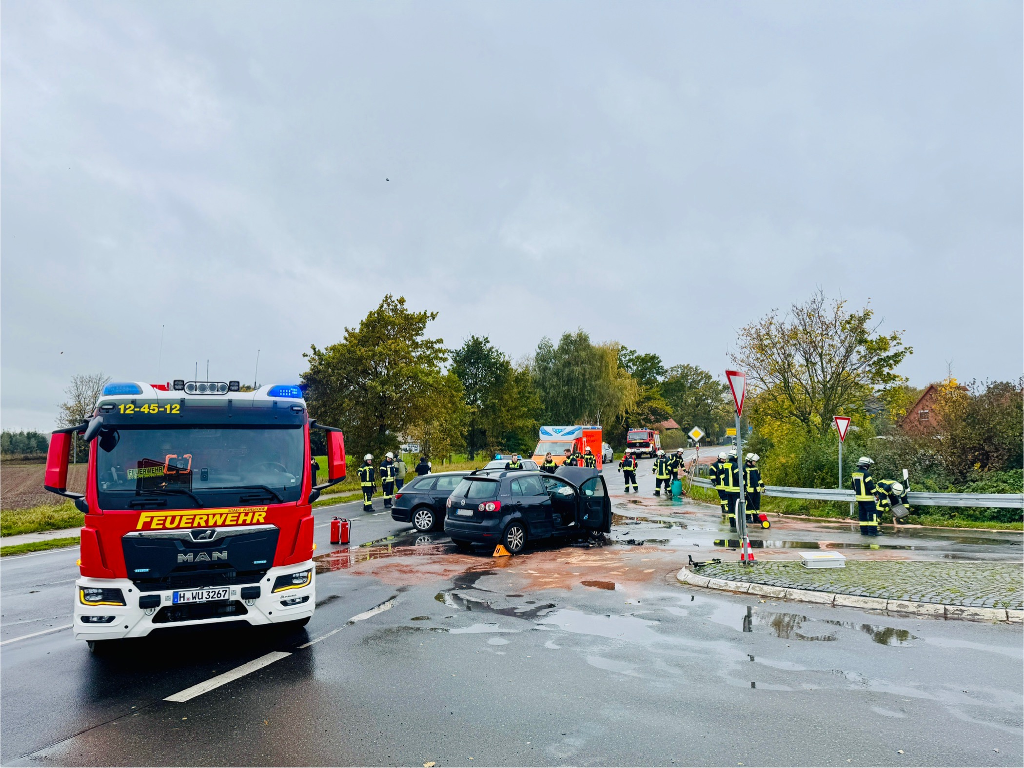 Zur Reinigung der Straße wurde eine Fachfirma angefordert, außerdem informierten wir den Fachbereich Umwelt der Region Hannover, um mögliche Umweltschäden ausschließen bzw. überprüfen zu lassen. Die K332 war in diesem Bereich für rund drei Stunden voll gesperrt, bevor sie nach Abschluss der Reinigungsarbeiten wieder freigegeben werden konnte.