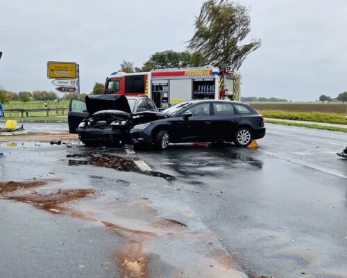 Am Sonntagmittag wurden wir um 11:51 Uhr zu einem Verkehrsunfall auf der K332 am Ortsausgang Großenheidorn in Richtung Poggenhagen alarmiert. Zwei Pkw waren im Kreuzungsbereich frontal zusammengestoßen und wurden dabei stark beschädigt. Beide Fahrer wurden verletzt, vom Rettungsdienst versorgt und eine Person anschließend in ein Krankenhaus transportiert.