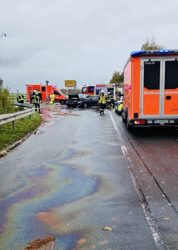 Nach unserem Eintreffen sicherten wir die Unfallstelle ab, stellten den Brandschutz sicher und machten die Fahrzeuge stromlos. Eine besondere Herausforderung ergab sich durch auslaufende Betriebsstoffe: Bei einem der Fahrzeuge war die Ölwanne aufgerissen, wodurch sich – begünstigt durch Regen und Wind – ein rund 30 Meter langer und drei Meter breiter Ölfilm auf der Fahrbahn gebildet hatte.