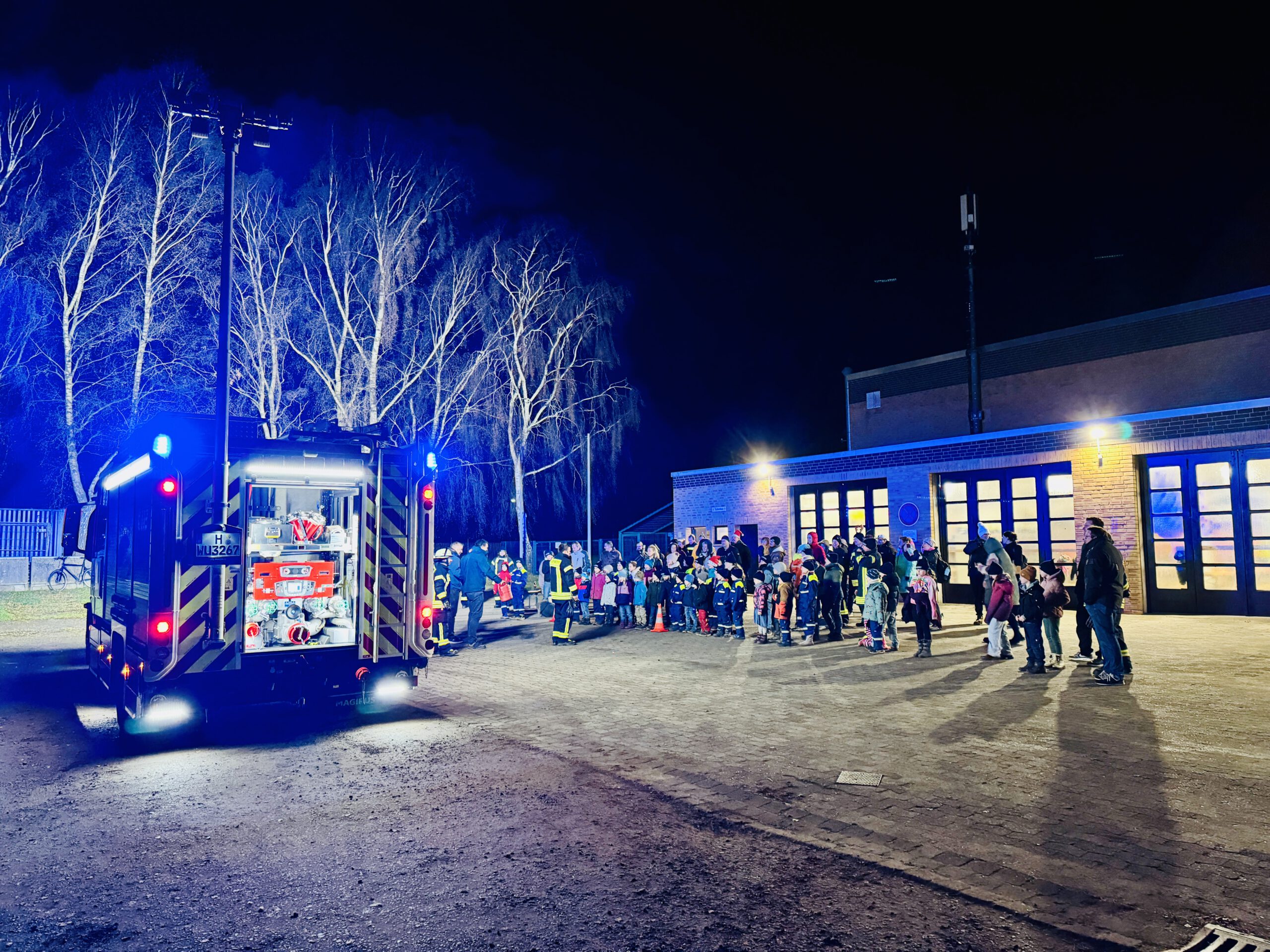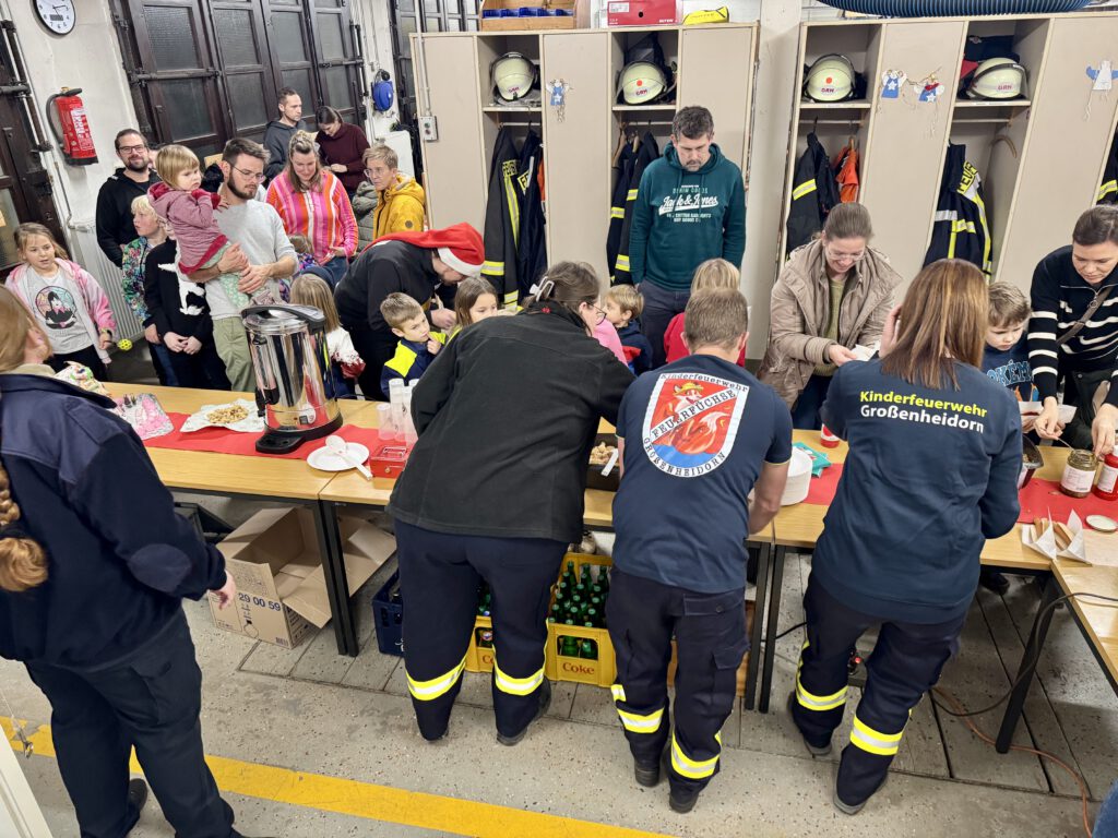 Ein besonderes Highlight für die Kinder war der Besuch des Weihnachtsmannes, der für alle eine eigene Wintermütze der Feuerwehr Großenheidorn mitgebracht hatte. Draußen konnten sich die Väter vor den Augen ihrer Kinder beim Löschen mit dem LF 10 beweisen – ein Programmpunkt, der für viel Spaß und Begeisterung sorgte.